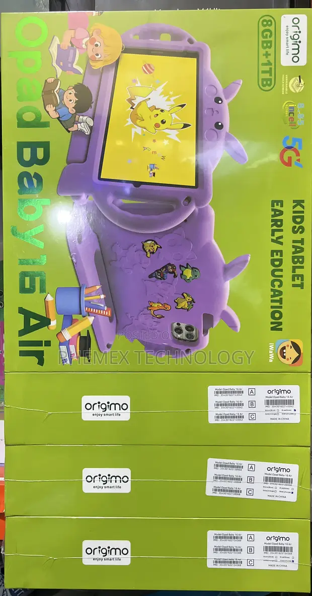 The Origimo Opad Baby 16 Air is a kids-friendly Android tablet featuring an 8.85″ “unbreakable” display, 8 GB of RAM, a massive 1 TB of storage, 5G/SIM connectivity, and a large 10,000 mAh battery—designed for durable, high-performance learning and entertainment.